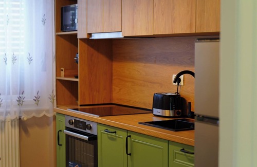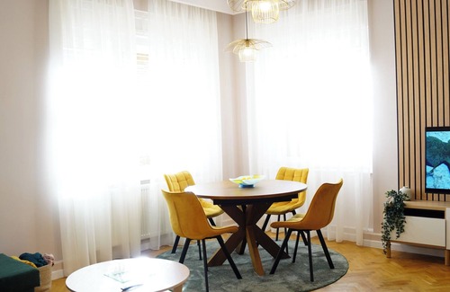 Your Sibiu adventure begins at this fabulous 2-bedroom family house. With 2 queen beds and 1 crib, this brilliant property offers a cozy living room with a sofa bed for extra comfort. Experience the comfort of a true 'home away from home,' ideal for families with young children. Nestled in a charming house steeped in history and thoughtfully modernized, this family-operated retreat offers a perfect blend of warmth, character, and contemporary convenience. Create lasting memories in a space designed with your family in mind!