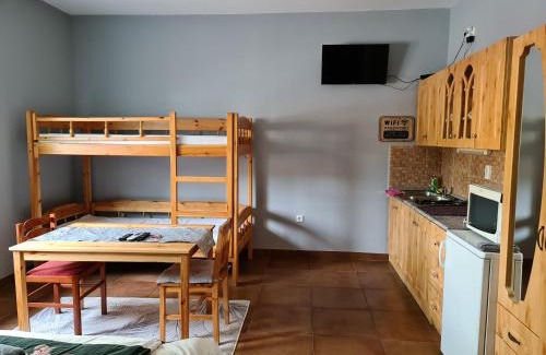 Offering a garden, Amina Apartman features accommodations in Mórahalom. With garden views, this accommodation provides a terrace. The guest house offers rooms with air conditioning, free private parking, and free Wifi. The units come with tiled floors and feature a fully equipped kitchenette with a microwave, a dining area, a flat-screen TV with streaming services, and a private bathroom with shower. A fridge, a stovetop, and kitchenware are also featured, as well as a coffee machine and a kettle. At the guest house, each unit comes with bed linen and towels. During warmer months, you can make use of the barbecue facilities and eat on the private patio. Guests can relax near the outdoor fireplace at the guest house. Votive Church Szeged is 13 miles from the guest house, while Szeged Zoo is 12 miles away. The nearest airport is Arad International Airport, 74 miles from Amina Apartman.