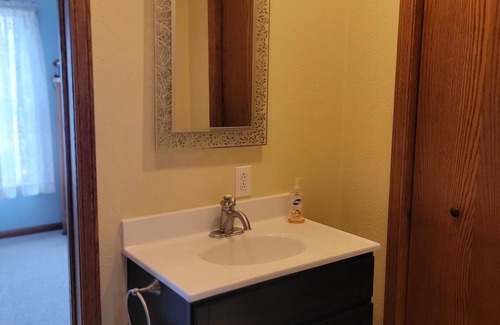 Three bedrooms, with a first-floor bedroom and two on the second floor separated by a jack 'n jill bathroom. Three levels with walkout basement for easy access and room to stretch out. Porch and deck to enjoy sunrise and sunset, a cup of coffee, or a meal.
