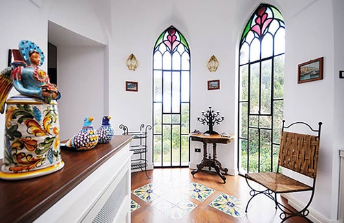 Make the next birthday, anniversary or special event in your life truly memorable with a large group gathering of up to 16 people at Villa Angelo. The magnificent 4-storey villa is set amongst the leafy outskirts of Sorrento, just 1 km from the town centre. The former 18th-century monks’ residence has been converted to a stunning holiday home (500 m²) featuring exquisite, intricately designed arched windows, colourful ceramics and a collection of locally crafted furniture and majolica pottery, and with multiple spaces for relaxing and dining en masse.