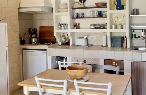 The Trullo consists of a spacious air-conditioned living room with a well equipped open plan kitchen with two bedrooms and a spacious shower room. The airy Trullo bedroom with its king sized bed is situated in the oldest part of the property beneath the ancient trullo cones. They say sleeping here is a magical experience like being back in the womb, the Lamia bedroom provides two more beds, making the property ideal for a family or friends sharing.
