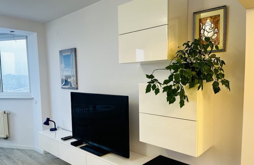 Chopin International Airport is a 15-minute drive away, and metro station Natolin is located only a 2-minute walk from the apartment, offering direct transportation to Warsaw city center in only 20 minutes. Equally, several local buses stop immediately in front of the block. The huge Kabacki Forest with all kinds of leisure activities is only 1 km away, and there is a wide-ranging selection of all kinds of restaurants and shops right next door, including a 1-minute walk away in the Ursynów shopping mall.