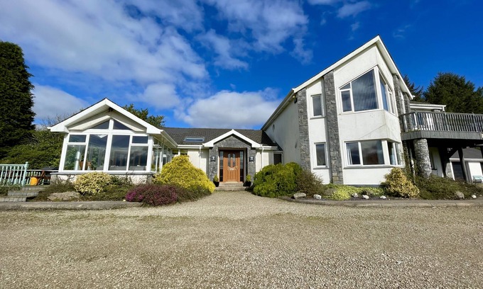 Downstairs you will find light and airy bedrooms, three with en-suite bathrooms, all with power showers, and a further lounge with a conservatory that leads to decking and BBQ area, Lackandarra Lodge sits on a 15-acre farm estate.