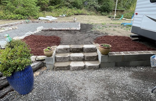 This site is nestled in the mountains between beautiful Port Angeles and Sequim, Washington. While this is next to our home, which is on 1.5 acres, it still is very private and quiet as it resides in the back behind our studio and garage. Your accommodations will be in a spacious 2013 26ft Wildwood Trailer. Outside you will site at a covered picnic table or around a cozy fire pit with hummingbirds and birds coming to the surrounding feeders. There is also a small grass area for yard games.