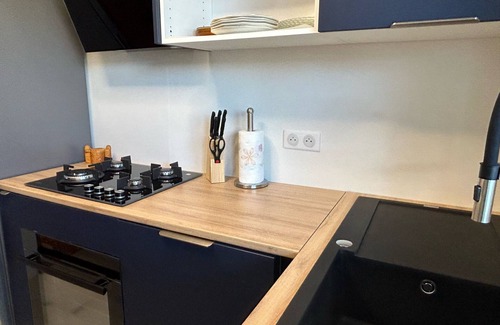 The apartment is fully equipped to meet all guest needs. The separate gas kitchen features modern appliances, including a refrigerator, microwave, oven, freezer, washing machine, dishwasher, as well as tableware, cutlery, cookware, a coffee maker, and a toaster. All rooms in the apartment are equipped with air conditioning for added comfort on warm days.