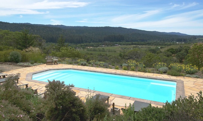Yes, this Anderson Valley Getaway has a swimming pool. Check the Facility Overview section for details about the pool and other available facilities.