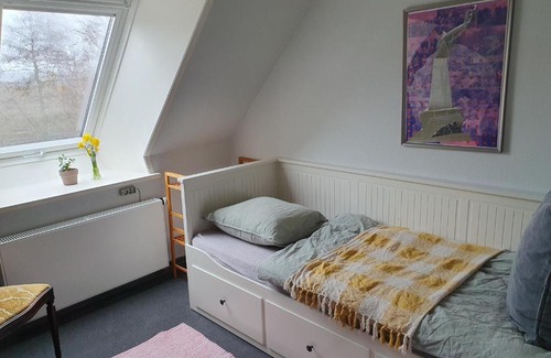 Food & DrinkTea/Coffee maker, Wine/Champagne, Bottle of water, Chocolate/CookiesBathroomShower, Shared bathroom, Toilet, Guest bathroom, Towels, Toilet paperMedia/TechnologyTV, Flat-screen TVGeneralClothing Iron, Heating, Carpeted, Trash cans, Smoke Alarm, Fire extinguisher, Key accessKitchenKitchenette, Refrigerator, Microwave, Washing machine, Electric kettle, Kitchenware, Dryer, Stovetop, Toaster, Coffee machine, Dining table, High chairViewViewLiving AreaDining areaBedroomWardrobe or closet, Linens, Childrens' cribsOutdoorsTerrace, Outdoor furniture, Outdoor dining areaAccessibilityUpper floor reachable by stairs onlyEntertainment & Family ServicesBoard games/puzzles, Books, DVDs or music for childrenRoom AmenitiesSocket near the bed, Non-feather pillow |