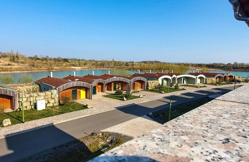 Modern resort "Lagovida". 98 apartments in the residence. 5 km from the centre of Espenhain, 10 km from the centre of Großpösna, 25 km from the centre of Leipzig, on the lake. For shared use: table tennis, beach volleyball, children's playground. In the complex: reception, restaurant, bar, storage room for bicycles, washing machine, tumble dryer (for shared use, extra), bicycle rental. Bread roll service, breakfast and half board possible (extra). Shop 10 km, supermarket 4 km, bus stop "Dreiskau" 2.6 km, railway station "Borna, S - Bahnhof" 17 km, sandy beach 100 m. Golf course (9 hole) 10 km, minigolf 100 m. Bicycle garage against payment, € 1 per bike/night.