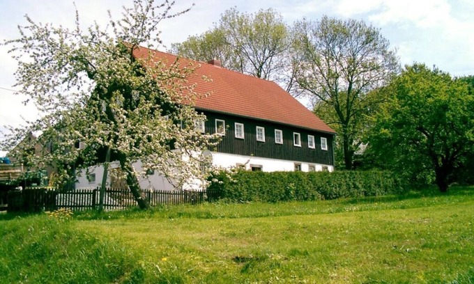 Large holiday apartment (approx. 80m²) with 3 bedrooms for up to 6 people for a holiday in a romantic Upper Lusatian half-timbered house. Garden and parking space.