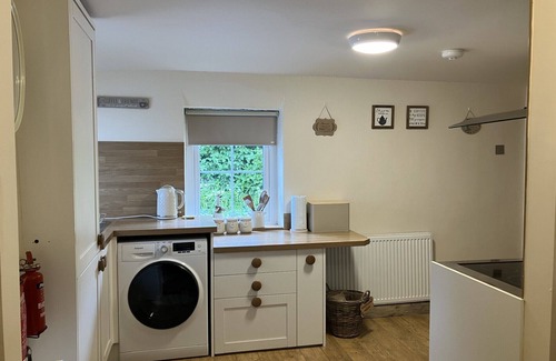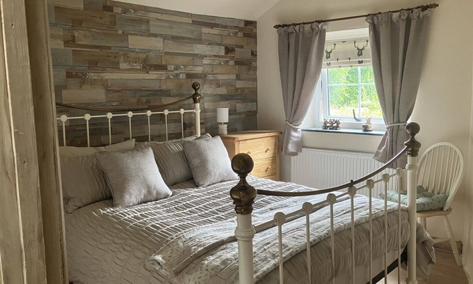 The cottage is a bungalow, so all on one level, hosting 1 bedroom, with a super king-size bed, along with a spacious lounge with a multifuel stove for those cold winter nights in, along with gas central heating. Off the lounge is kitchen with electric range cooker, fridge/freezer, microwave, washer/dryer, and all other essentials you would have in your kitchen at home, lovely farmhouse kitchen table to sit comfortable at. Fully fitted bathroom with bath and shower overhead. Outside at back of cottage,is a small sitting area where you can listen to the babbling brook, idea for that romantic getaway.