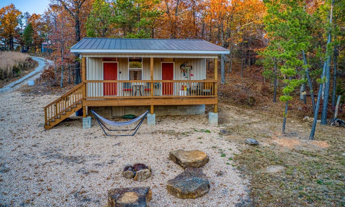 Not just a place to stay! Adventure with the whole family at this peaceful 1 bedroom 1 bath cabin with a large covered deck, fire pit, grill & fully stocked kitchen. Take a 15 min hike to Antenna Pine Overlook for a breathtaking view of the Buffalo National River. Make your way through the maze of bluffs & boulders to the base of the 40' waterfall where you could spend all day exploring or make your way to the famed Hemmed In Hollow Falls. There are lots of hiking trails within 5 miles of the cabin.