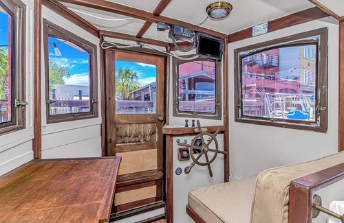 Welcome aboard this lovingly restored antique tugboat, moored just steps from the storied streets of Georgetown. Once a proud workhorse of American waterways, this vessel now offers a rare opportunity to experience life as it was in 1907—without sacrificing comfort. Let the scent of old pine and briny air greet you each morning as the harbor stirs to life. Cradle a warm mug of coffee as the sun lifts above the horizon, painting the masts and marshes in amber light.