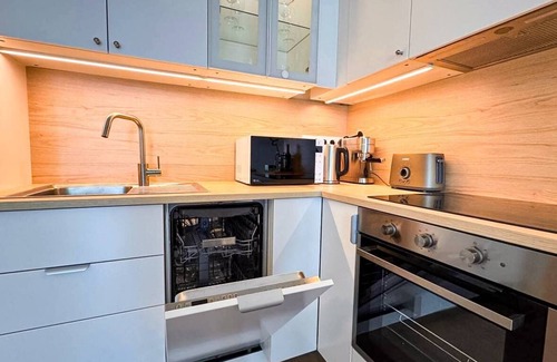 The apartment is fully equipped with all necessary appliances, including a dishwasher, coffee machine, microwave, TV, and much more, ensuring you have everything you need for a comfortable stay.