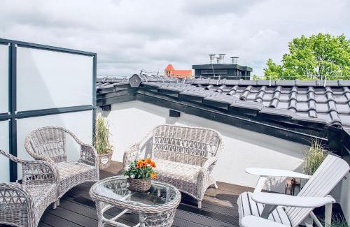 BathroomToilet paper, Towels, Bathtub or shower, Hairdryer, Shower, Body soap, ToiletMedia & TechnologyFlat-screen TV, TVGeneralIroning facilities, Iron, Hardwood or parquet floors, Trash cans, Heating, Tile/Marble floorKitchenRefrigerator, Cleaning products, Electric kettle, Stovetop, Kitchen, Dining table, Washing machine, Oven, Wine glasses, Kitchenware, Kitchenette, Coffee machineOutdoorsTerrace, Outdoor furniture, Outdoor dining area, BalconyLiving AreaSofa, Sitting area, Dining area, DeskViewSea view, View, City viewBedroomLinens, Wardrobe or closetBuilding CharacteristicsPrivate apartment in buildingRoom AmenitiesClothes rack, Socket near the bedAccessibilityAccessible by elevator |