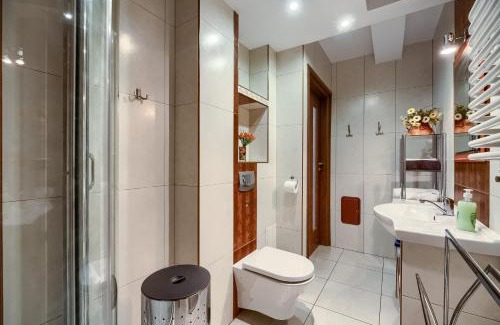 Featuring a garden, Apartament nad Kryniczanką features accommodations in Krynica Zdrój. With river views, this accommodation offers a balcony. Free Wifi, an elevator, and full-day security are featured. Offering a terrace and mountain views, the apartment includes 1 bedroom, a living room, satellite flat-screen TV, an equipped kitchen, and 1 bathroom with a hot tub and a shower. Towels and bed linen are available in the apartment. This apartment is allergy-free and non-smoking. Skiing and fishing can be enjoyed nearby, while a ski equipment rental service, ski-to-door access and ski storage space, are also available on-site. Nikifor Museum is a 13-minute walk from the apartment, while Krynica Zdroj Train Station is 1.4 miles away.