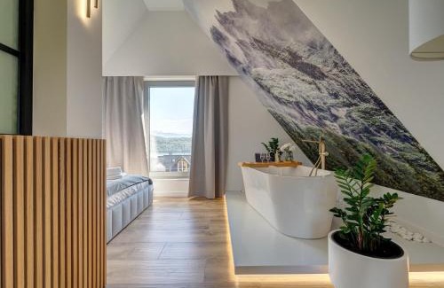 10 miles from Niedzica Castle in Kluszkowce, Apartament Panorama Lake & Ski offers accommodations with access to a sauna and hot tub. This apartment provides free private parking and free Wifi. Zakopane Railway Station is 25 miles from the apartment and Zakopane Aqua Park is 26 miles away. Providing a balcony and mountain views, the spacious apartment includes 3 bedrooms, a living room, flat-screen TV, an equipped kitchenette, and 2 bathrooms with a bath and a shower. Towels and bed linen are featured in the apartment. There's also a seating area and a fireplace. Guests at the apartment will be able to enjoy activities in and around Kluszkowce, like skiing and cycling. Bania Thermal Baths is 16 miles from Apartament Panorama Lake & Ski, while Treetop Walk is 20 miles away.