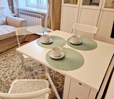 Food & DrinkBottle of water, Tea/Coffee makerBathroomShower, Private bathroom, Shampoo, Towels, Toilet, Free toiletries, Body soap, Hairdryer, Toilet paper, ToothbrushGeneralCarpeted, Key access, Trash cans, Heating, Mosquito net, Iron, Ironing facilitiesKitchenElectric kettle, Kitchenette, Refrigerator, Microwave, Kitchenware, Dining table, Oven, Cleaning products, Coffee machine, Washing machine, Dishwasher, Kitchen, Stovetop, Wine glassesMedia & TechnologyFlat-screen TVLiving AreaSofaViewCity view, ViewBedroomWardrobe or closet, LinensBuilding CharacteristicsPrivate apartment in buildingRoom AmenitiesSocket near the bed, Clothes rack, Sofa bedEntertainment & Family ServicesBoard games/puzzlesAccessibilityRoll-in shower |