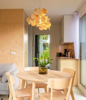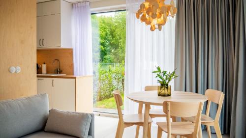 Offering a garden, Apartament w willi z ogrodem SurfingBird Dźwirzyno provides accommodations in Dźwirzyno. This property offers access to a patio, free private parking, and free Wifi. When staying at the villa, guests can use private entrance. Apartament w willi z ogrodem SurfingBird Dźwirzyno provides guests with a terrace, garden views, a seating area, cable flat-screen TV, a fully equipped kitchen with a dishwasher and an oven, and a private bathroom with shower and a hair dryer. A fridge, a stovetop, and kitchenware are also featured, as well as a coffee machine and a kettle. At the villa complex, the units are fitted with bed linen and towels. Fresh pastries, pancakes, and cheese are served as part of the breakfast offered at the property. For guests with children, the accommodation offers outdoor play equipment. A bicycle rental service is available at Apartament w willi z ogrodem SurfingBird Dźwirzyno. Dźwirzyno Beach is a 11-minute walk from the villa, while Kołobrzeg Railway Station is 7.5 miles away.