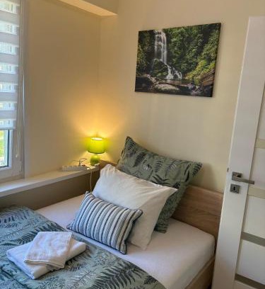 Both free Wifi and parking on-site are available at Apartament Zielony Zakątek free of charge. The accommodation provides private check-in and check-out and a mini-market for guests. The apartment consists of 2 bedrooms, a living room, a fully equipped kitchen with a dishwasher and a kettle, and 1 bathroom with a bath and a hair dryer. Towels and bed linen are provided in the apartment. This apartment is allergy-free and non-smoking. Rzeszów-Jasionka Airport is 49 miles away.