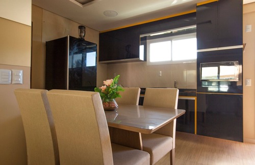 - Cozinha equipada com tudo que você precisa para as suas refeições, incluindo freezer, fogão, forno, geladeira, liquidificador e micro-ondas