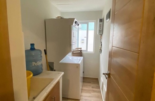 El apartamento esta en un primer nivel con acceso a piscina comun dentro del residencial, cuenta con 2 habitaciones ambas con aire acondicionado, 4 camas + colchón inflable. TV en habitacion principal y sala, Wifi, 1 baño, cocina, sala con aire acondicionado, balcon, area de lavado (Incluye lavadora y secadora). El apartamento posee todo lo mostrado en las fotos. .