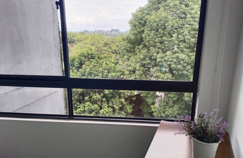 Apto 501 5piso con cama doble vista hacia la ciudad cocina baño