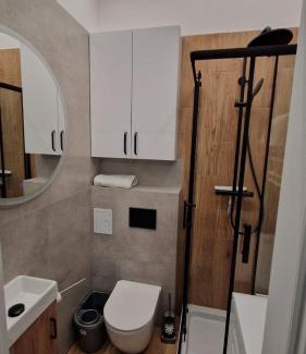 Apartamenty Mazurska Bryza Centrum offers accommodations in Iława, 12 miles from Stadium Lubawa and 21 miles from Polish Church in Prabuty. This property offers access to a terrace and free private parking. This apartment comes with a dining area, a fully equipped kitchenette with a microwave, and a flat-screen TV. Towels and bed linen are featured in the apartment. The property has an outdoor dining area. Stadium Ostroda is 22 miles from the apartment, while Brodnica Lake District is 23 miles away. Olsztyn-Mazury Airport is 77 miles from the property.