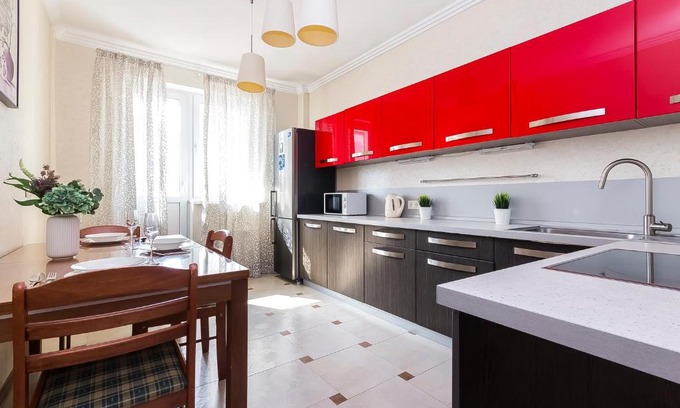 Set in Krasnodar, 2.7 km from Monument Shurik and Lidochka and 9 km from Red Square Shopping Mall, ApartGroup Kubanskaya Naberezhnaya 64 offers free WiFi and air conditioning. Housed in a building dating from 2012, this apartment is 9 km from FC Krasnodar Stadium and 11 km from Basket Hall Arena Krasnodar. The apartment is fitted with 1 bedroom, 1 bathroom, bed linen, towels, a flat-screen TV, a dining area, a fully equipped kitchen, and a balcony with city views. Botanical Garden of Professor I. S. Kosenko is 2.7 km from the apartment, while Krasnodar Expo is 10 km away. The nearest airport is Krasnodar International Airport, 18 km from ApartGroup Kubanskaya.