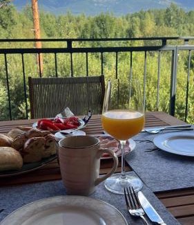 BathroomBathrobe, Free toiletries, Hairdryer, Private bathroom, Slippers, Bathtub or shower, Toilet paper, Toilet, Conditioner, Walk-in shower, Towels, Body soap, Shower, ShampooMedia & TechnologyFlat-screen TV, TVOutdoorsTerrace, Balcony, Outdoor dining area, Outdoor furnitureKitchenWine glasses, Washing machine, Oven, Kitchenware, Refrigerator, Dining table, Dishwasher, Stovetop, Kitchen, Cleaning products, Coffee machineLiving AreaSitting area, Sofa, Dining areaGeneralCarpeted, Heating, Hardwood or parquet floors, Trash cansViewMountain view, ViewBedroomWardrobe or closet, LinensAccessibilityUpper floors accessible by stairs onlyBuilding CharacteristicsPrivate apartment in buildingRoom AmenitiesSofa bed, Hypoallergenic pillow, Socket near the bed, Drying rack for clothingFood & DrinkChocolate/Cookies, Bottle of water, Wine/Champagne |