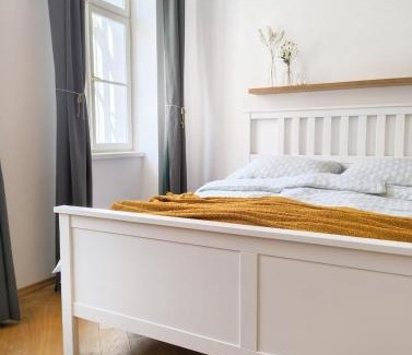 Food & DrinkTea/Coffee makerBathroomTowels, Toilet, Toilet paper, ShowerGeneralSmoke Alarm, Iron, Fan, Ironing facilities, Heating, Trash cans, Key access, Hardwood or parquet floors, Private entranceKitchenDining table, Stovetop, Cleaning products, Coffee machine, Wine glasses, Oven, Microwave, Kitchenware, Kitchen, RefrigeratorBedroomLinens, Wardrobe or closetAccessibilityUpper floors accessible by stairs onlyBuilding CharacteristicsPrivate apartment in buildingEntertainment & Family ServicesBooks, DVDs or music for childrenRoom AmenitiesNon-feather pillow, Socket near the bedViewQuiet street view |