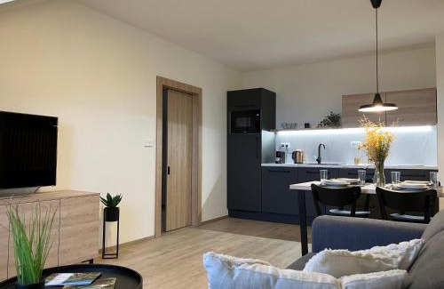 Featuring a shared lounge, Apartmán Nahoře offers accommodations in Vacov. This property offers access to a terrace and free private parking. Outdoor seating is also available at the apartment. With free Wifi, this 1-bedroom apartment features a flat-screen TV and a kitchen with an oven and microwave. Towels and bed linen are available in the apartment. The accommodation is non-smoking. Guests can swim in the outdoor swimming pool, relax in the garden, or go hiking. The nearest airport is Ceske Budejovice Airport, 44 miles from Apartmán Nahoře.