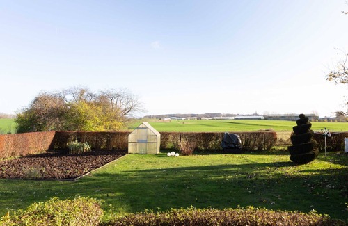 The small apartment (25 m²) is modern and comfortably furnished. A kitchenette with cooking facilities is located in the corridor area; from here you get into the living room / bedroom or shower / WC. The belonging to the apartment terrace overlooking the meadows invites you to linger. • Max. 2 persons • separate entrance • ground floor • 1 living room / bedroom (double bed) with radio and TV • kitchenette (fridge, 2 plate cooking facilities, coffee machine, kettle, toaster) • shower / WC • terrace with seating • cot on request • lockable Bicycle storage • Parking • 1 pet (all sizes) is welcome to bring along (extra charge, please book).