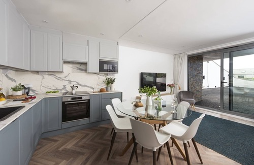 Ideal for family holidays or coastal getaways with friends, this lovely property is designed for relaxation and socialising. Beautifully furnished and equipped there are three gorgeous bedrooms and two bathrooms which provide ample space for six guests. The spacious open-plan living area with sumptuous sofas and a Smart TV is where you can unwind in complete comfort while the sleek, modern kitchen has all you need for home cooking and entertaining. On warm days, step out through the sliding doors to your private garden and patio where you can dine alfresco or enjoy evening drinks in the sea air.