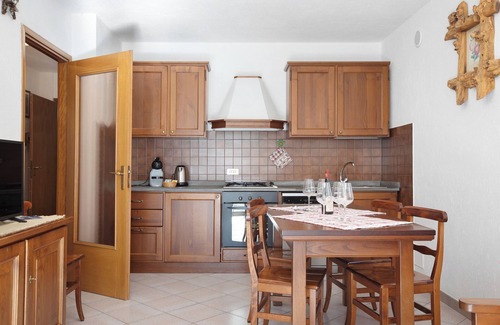 Facing south, on the mezzanine floor, from the large balcony you can admire the splendid view of the mountains, from the Grivola to the Ruitor Glacier. The apartment consists of living room with sofa bed, HD LCD TV with digital satellite decoder, Internet connection both with cable and Wi-Fi, kitchenette equipped with cooking utensils,4 burners, oven, refrigerator, dishwasher, a large and bright double bedroom and a triple bedroom. The beds with adjustable slatted frames and orthopedic mattress. Two bathrooms with shower, hair dryer, washing machine. Large livable terrace.