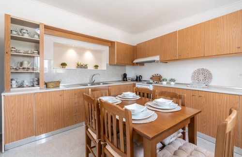 With a view of the mountain, the holiday apartment Absinthia Fanes 1 in Rhodes is perfect for a relaxing holiday. The 96 m² property consists of a living room with a sofa bed for 2 people, a well-equipped kitchen, 3 bedrooms and 1 bathroom and can therefore accommodate 6 people. Additional amenities include high-speed Wi-Fi (suitable for video calls), a smart TV with streaming services, air conditioning as well as a washing machine. A baby cot and a high chair are also available. This vacation rental features a private balcony for your evening relaxation.