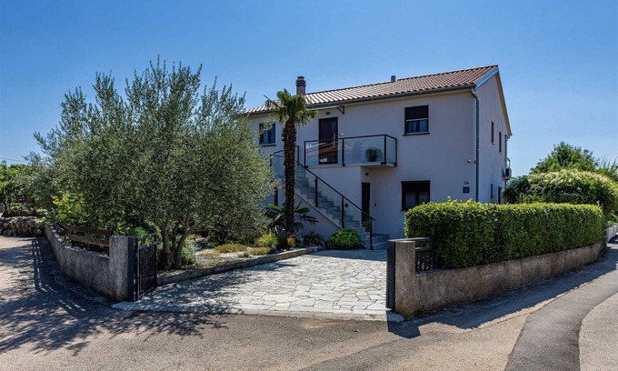 Apartments Aki are two spacious accommodation units in a family house, located in a small charming village outside Malinska on island Krk. They are surrounded by nature, forest and domestic animals, creating an idyllic environment ideal for relaxing walks and enjoying nature. The house contains two apartments, one of which is Apartment Aki 2, located on the first floor. Apartment Aki 2 consists of a living room, a well-equipped kitchen, and a bathroom with a shower. The bedroom with a double bed provides comfort, while there is another double bed on the gallery above the kitchen, which is accessed by stairs. The charming apartment also has a balcony with a view of the forest, creating a quiet corner for relaxation. The accommodation is ideal for a young couple or family, with the possibility of accommodating up to 4 people. Apartment Aki 2 has a large yard and a private parking space, providing convenience for guests. It is equipped with air conditioning, WiFi, satellite TV, a dishwasher, a coffee maker, and microwave oven. Unfortunately, pets are not allowed.