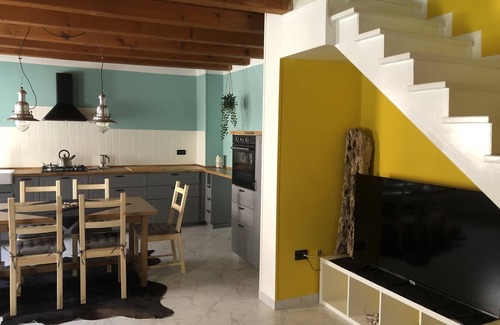 The holiday apartment "Cá Greta Chioggia" is located in Chioggia and is perfect for an unforgettable holiday with your loved ones. The 2-storey property consists of a living room with a sofa bed for an adult or 2 children, a well-equipped kitchen with a dishwasher, 2 bedrooms and 2 bathrooms and can therefore accommodate 5 people. Additional amenities include Wi-Fi, air conditioning, heating, a washing machine as well as a smart TV with streaming services.