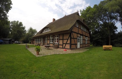 The Old Rectory in 1777 built. We bought it in 1996 and restored with great attention to detail in recent years. The house is centrally located and is surrounded by a large garden with mature trees. The apartments have a separate entrance. Here you can enjoy tranquility, comfortably watching grilling or children playing. The house is through its truss a visual highlight and the thatched roof ensures a pleasant living environment. Due to the central location of the place you can reach the attractions and beaches of the island in a short time. The Baltic Sea and the Bodden waters around can also go fishing. Recreational anglers we can arrange transfers a guide with boat.