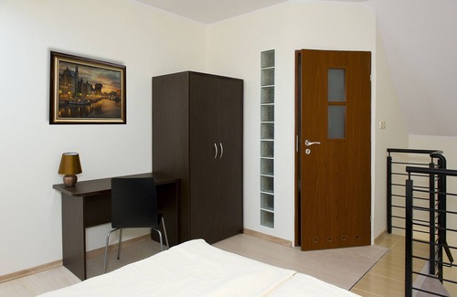 Apartment has got living room with a dining area and a kitchenette on ground floor and one bedroom, bathroom on first floor. The apartment has common terrace with garden view. In the offer you can find a fully equipped kitchen (electric cooker, microwave oven, pots, glass). The living room has a sofa bed to sleep, and in bedroom are bed for double. Ideal for families with older children up to 12.