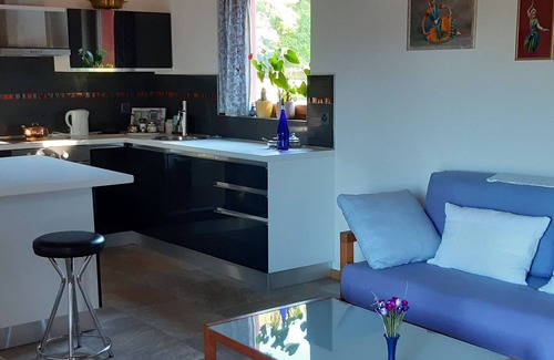 The house and the Spa are build with sustainable materials (douglas tree, stone pine, hemp, clay, …) combining comfort, tradition and tecnlogy to create a comfortable and healty environment. The appartament is sunny, 75 sqm, has a comfortable terasse und a garden. Has a completly furnished kitchen, a badroom with shower and two-people-bathtub. For an additional cost, you can reserve the private Sauna and Hammam with a relax area and a garden. If you like, you can also book traditional Ayurveda treatments.