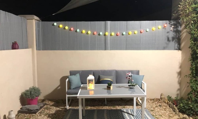 The charm continues outside with a shady garden featuring a lounge, a dining area (table/plancha) and a relaxation area equipped with a mist-maker and a Zen "waterfall fountain" whose photos will seduce you.