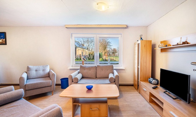 The holiday apartment Ferienhaus Peters with step-free interior is located in Dingen and is the ideal accommodation for a relaxing getaway. The 75 m² property consists of a living room, a kitchen, 3 bedrooms and 1 bathroom and can therefore accommodate 5 people. Additional amenities include Wi-Fi, a TV as well as a washing machine. A baby cot is also available. This vacation rental offers a private outdoor space with an open terrace and a barbecue.