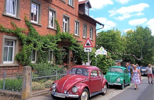 At the southern entrance of Fladungen, you will find our impressive building, the former "Gasthaus zur Eisenbahn," located right next to the Franconian Open-Air Museum Fladungen. On the upper floor of the house, we offer a holiday apartment for 2 people and another apartment for up to 7 people (5 adults and 2 children). Parking spaces are available directly at the house. There is storage space for bicycles, strollers, and similar items. Fladungen is situated in the center of the Rhön Biosphere Reserve, surrounded by the fascinating low mountain landscape of the Rhön, also known as "the land of open vistas." The medieval city wall, charming half-timbered houses, and winding alleys give Bavaria’s northernmost town a special flair. Untouched nature, hiking, cycling, historic towns, castles, palaces, and many other leisure activities offer you the best conditions for a relaxing holiday.
