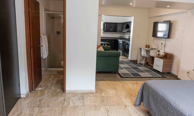 Welcome to this modern and spacious 1-room apartment located in Torreón, Coahuila de Zaragoza, Mexico. Situated in the sought-after Torreón Jardín area, this apartment offers convenient access to nearby amenities and attractions, making it an ideal choice for travelers seeking comfort and convenience