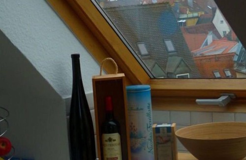 3 room apartment on the 5th floor with 2 additional rooftop rooms. Spectacular view over Augsburg: St. Moritz, town hall with Perlach tower, Barfüsserkirche, cathedral, Fuggerei. Enjoy the beautiful view of the town hall, probably the most important Renaissance building north of the Alps, with a good glass of red wine! Central location on the edge of the old town. Opposite the “City Galerie” shopping center. TG parking space. New fitted kitchen with dishwasher. Coffee machine, kettle, egg cooker, toaster, microwave. Bathroom with double sink, whirlpool bathtub and shower. Washing machine, hairdryer, bed linen, towels available. In the living room 42" TV, stereo system. Baby travel cot, high chair. You can reach the apartment by key using the elevator