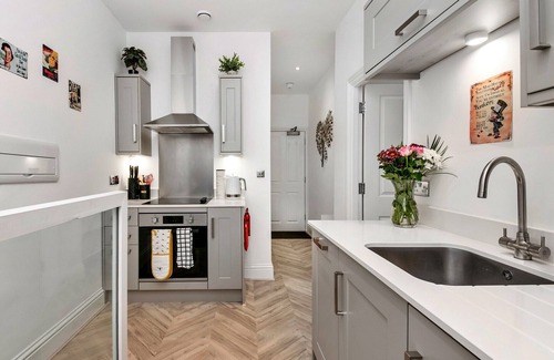 This charming one-bedroom apartment is located in the historic town of Boroughbridge, North Yorkshire, offering the perfect retreat for two guests. The split-level design includes a stylish lounge with a dining table for up to four, along with a Smart TV and Wi-Fi, ensuring a comfortable stay. The contemporary décor and thoughtful personal touches make the apartment feel welcoming and relaxing. Upstairs, you'll find a fully-equipped kitchen with modern appliances, including a dishwasher, oven, hob, fridge, freezer, and microwave, ideal for preparing meals. The spacious king-size bedroom includes a flat-screen TV, while the separate bathroom features a large shower, wash basin, and WC. Boroughbridge itself offers a thriving High Street with a variety of cafes, shops, pubs, and restaurants to explore. The town is also home to the Butter Market Museum, where you can learn about local history, and there are plenty of peaceful walking routes to enjoy. The town’s cobbled Hall Square adds to its historic charm. The apartment provides on-site parking for one vehicle, with additional pay-and-display car parks nearby. Situated in the heart of Yorkshire, this apartment is the perfect base for couples looking to explore the area and enjoy a memorable getaway.