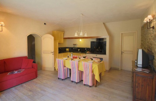 This atmospheric apartment is part of a magnificent 200 year old farmhouse, that has been entirely restored. The owner lives in one of the apartments and the remaining 4 are being rented. The large pool, meadow with small playground and washing machine are shared with the other residents. The accommodations are wonderfully furnished and have features such as authentic brick and chestnut beamed ceilings.
