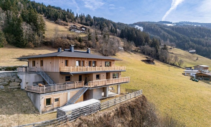 The modernly furnished holiday apartment with a size of 46m² is located in the 1st basement of a newly built two-family hillside house (2023) in a secluded location and stands on an 18m high rock wall and thus offers a fantastic panoramic view of the middle and front Zillertal. The apartment offers enough space for a maximum of 4 people and has a sun terrace of approx. 20m². It is perfect for relaxing in a relaxed atmosphere after an excursion, hiking or biking and invites you to cozy barbecue evenings in summer. The accommodation has a bedroom with a double bed and satellite TV, a living area with a pull-out couch that offers space for 2 people and a dining area with a harmonious ambience that invites you to eat together and spend sociable evenings. The accommodation also has a fully equipped bathroom including a washing machine. Two separate parking spaces are located directly at the house. There is an E-Charging Wallbox, so you have the option of charging your electric car directly on site. The district of Distelberg is picturesquely located above the towns of Stumm and Aschau at around 1100 m above sea level. Coming from Stumm, it takes around 15 minutes by car up to the property on a well-paved asphalt mountain road that is cleared in winter. The Distelberg is well known for its beautiful hikes and tours by mountain bike or e-bike, as well as numerous places to stop for a break. Up here you can find rustic hut snacks, Tyrolean home cooking and game specialties, as well as a farm shop with regional organic products straight from the farm.