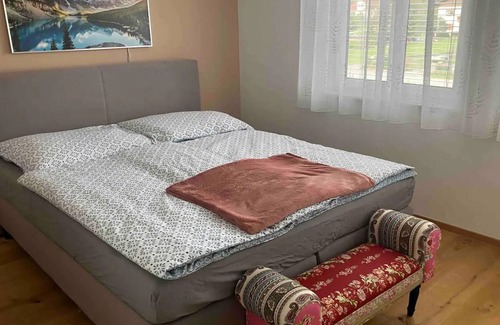 This beautiful modern apartment for a maximum of 5 people with fantastic mountain views is located in Eberndorf in Carinthia. The apartment is on the first floor and offers a spacious living room, an open fully equipped kitchen with dining table, 2 spacious bedrooms, 1 bathroom, washing machine and dryer, an infrared sauna and a fitness area in the basement. The special highlight is the large outdoor terrace. Parking is also available on site. This apartment is in close proximity to some of the most breathtaking natural beauty and recreational opportunities. The Klopeinersee-Südkärnten golf club/golf park and the picturesque Klopeiner Lake are just 5 km away. The Turnersee and the Gösselsdorfer See are also easily accessible and offer refreshment and relaxation in summer. In winter, the Petzen / Feistritz ob Bleiburg ski area offers 15 kilometers of slopes, a perfect ski area for beginners, snowboarders and recreational skiers. There are plenty of shops for your daily needs right in town as well as a good selection of restaurants.