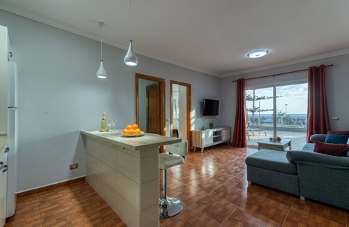 The apartment in Mogán has 2 bedrooms and capacity for 4 persons. Accommodation of 85 m² cozy and has an exterior, located on beach, It has waterfront. The property is located 100 m sand beach "Mogan Beach", 100 m from the restaurant "Restaurants", 200 m rock beach "Mogan Beach", 500 m supermarket "Spar Supermarket", 15 km golf course "Anfi Tauro Golf", 15 km amusement park / theme park "Holiday World", 15 km water park "Aqualand", 45 km international airport "Gran Canaria Airport", 45 km airport "Gran Canaria Airport" and it is located in a a family-friendly zone and next to the sea. The accommodation is equipped with the following items: outdoor furniture, fenced plot, 60 m² terrace, washing machine, iron, internet (Wi-Fi), hair dryer, 1 TV. The open plan kitchen, of hotplate of glass ceramics, is equipped with refrigerator, microwave, freezer, dishwasher, dishes/cutlery, kitchen utensils, coffee machine, toaster and kettle.